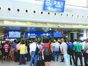 據(jù)北京媒體報道,首都機(jī)場前日臨時提高了安檢級別,鞋子、皮帶都要脫掉,行李箱和手提包也要一一打開,“機(jī)場方面此前沒有發(fā)布任何消息,有些旅客為了插隊(duì)還差點(diǎn)打起來。”前日早上6時11分,首都機(jī)場T3(三號)航站樓安檢區(qū)到處都是人,就像擠地鐵一樣。幾千人排成一個個縱隊(duì),擠滿安檢口,秩序一片混亂,隊(duì)伍緩慢向前移動。首都機(jī)場官網(wǎng)航班實(shí)況中顯示,從昨日上午7時至11時30分,晚點(diǎn)達(dá)半小時以上的航班有百余趟。